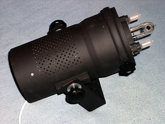 zařízení, včetně krytu výbojky. Ta je umístěna na této ucpávce uprostřed, na vyvýšeném nástavci z 60mm novodurové trubky
