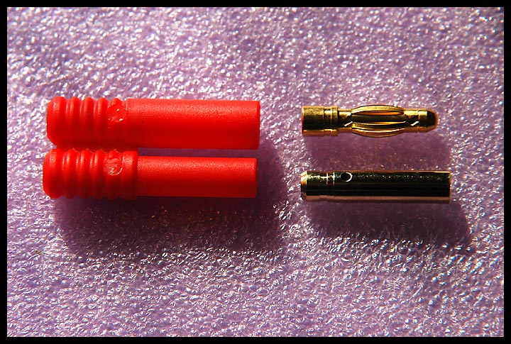 (banánek+dutinka). Deklarované proudové zatížení tohoto konektoru výrobcem je až 40A. Oboje