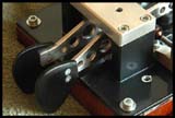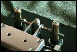 Asi 2cm za sloupky s magnety jsou další dva soupky, opět z vnější strany pák, které ovšem musí být od základny odizolovány. Tyto jsou z mosazné kulatiny průměru 8mm, a