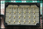 Kvůli požadavku na co nejmenší velikost a nejmenší váhu, jsem se rozhodl jako zdroj světla použít ultrasvítivé rozptylové SMD LED 700mCd/120° (GM elektronik- 5Kč) umístěné na plošném spoji v plastové krabičce 70x50x14mm (jedna polovina dvoudílné krabičky). LEDek jsem použil 24 kusů řazených sériově po čtyřech v 6 řadách.